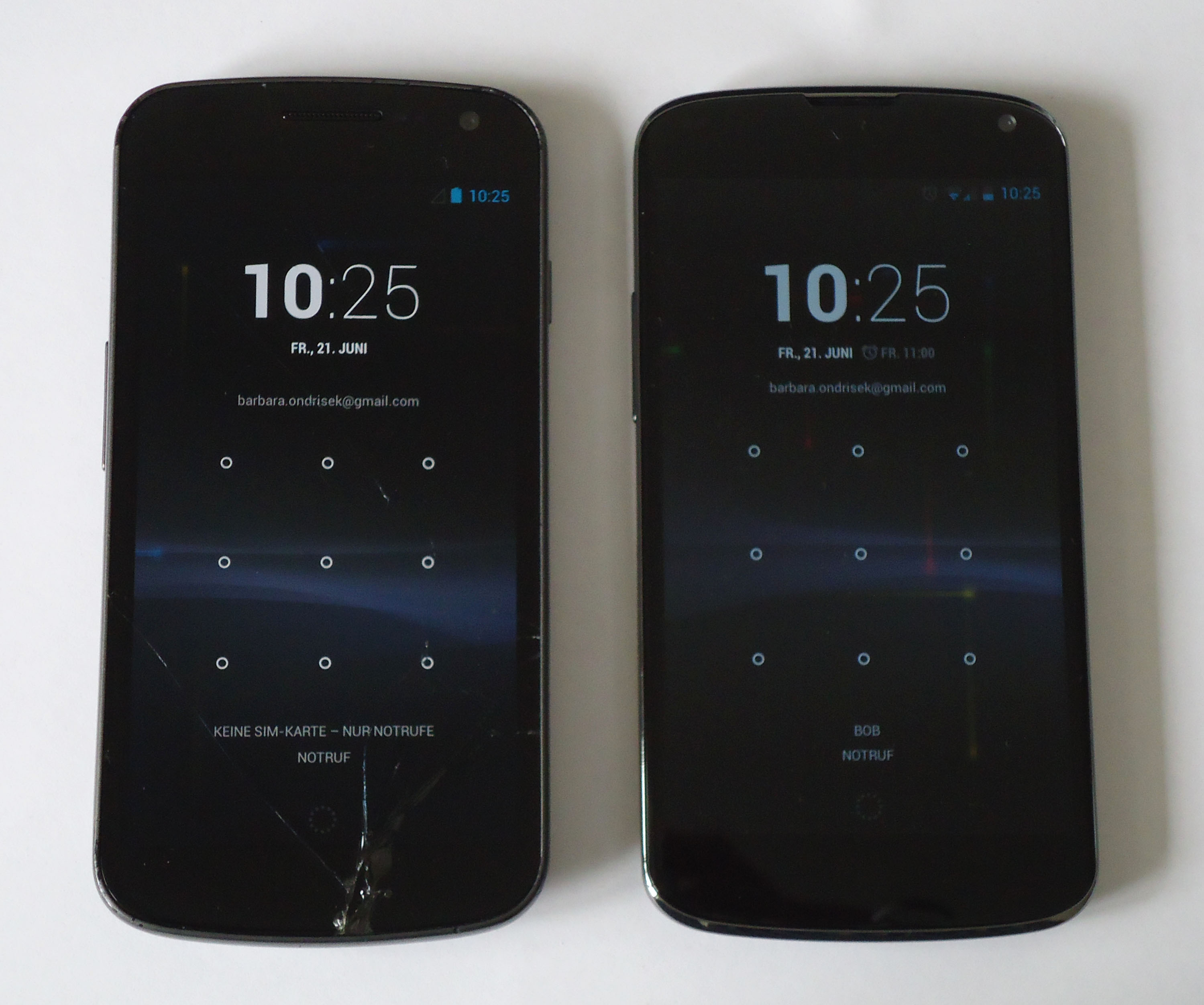 Der Grund fürs Wechseln: Beim Galaxy Nexus ist mir innerhalb der letzten einundhalb Jahre, die ich es hatte, zweimal das Gorilla-Glass-Display gesprungen, obwohl es mir aus nicht allzu hoher Höhe aus der Hand gerutscht ist. Das Display zu tauschen kostet beim Galaxy Nexus allerdings satte 200€ (da nicht nur das Glas, sondern auch die angebrachte Platine und somit eigentlich fast das gesamte Grät getauscht wird), deswegen habe ich beim zweiten Glasbruch entschieden, doch ein neues Gerät zu kaufen.