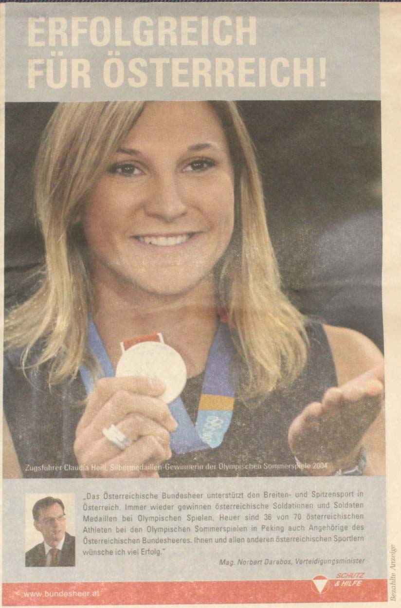 gestern im print standard: werbung mit einer olympia 2004 preisträgerin